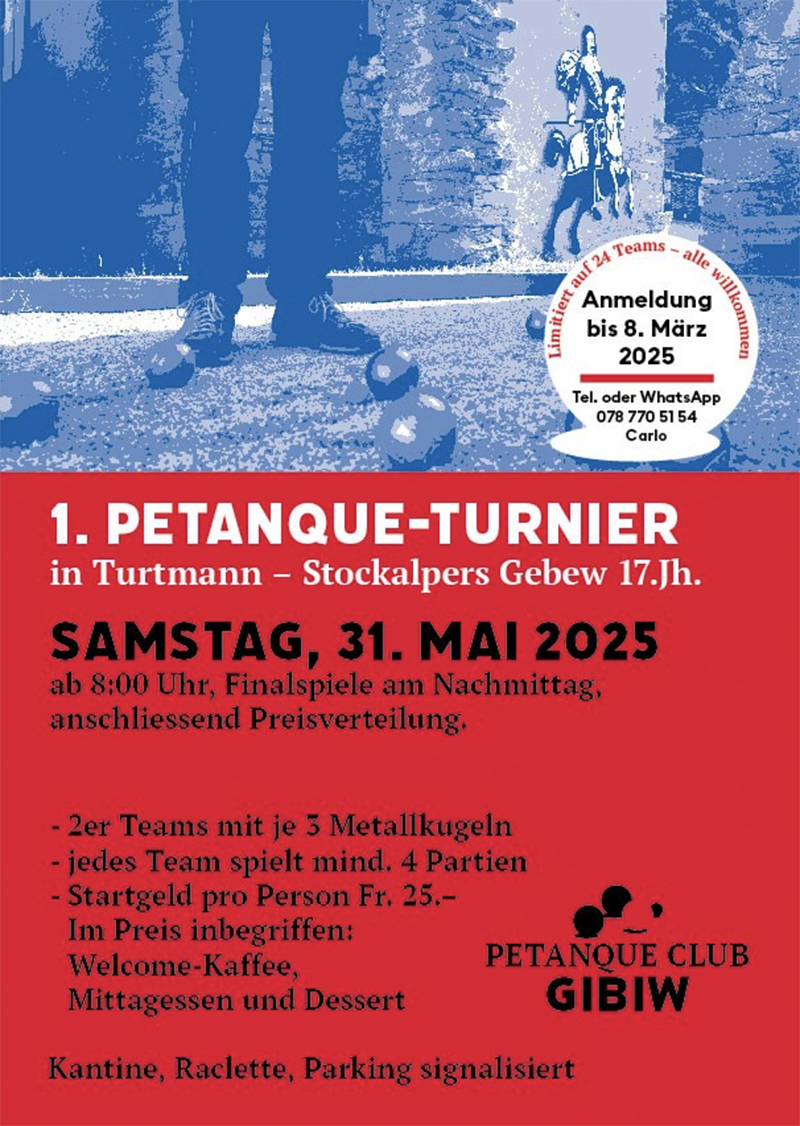 Samstag, 31. Mai 2025 ab 08.00 Uhr, Finalspiele am Nachmittag, anschliessend Preisverteilung.